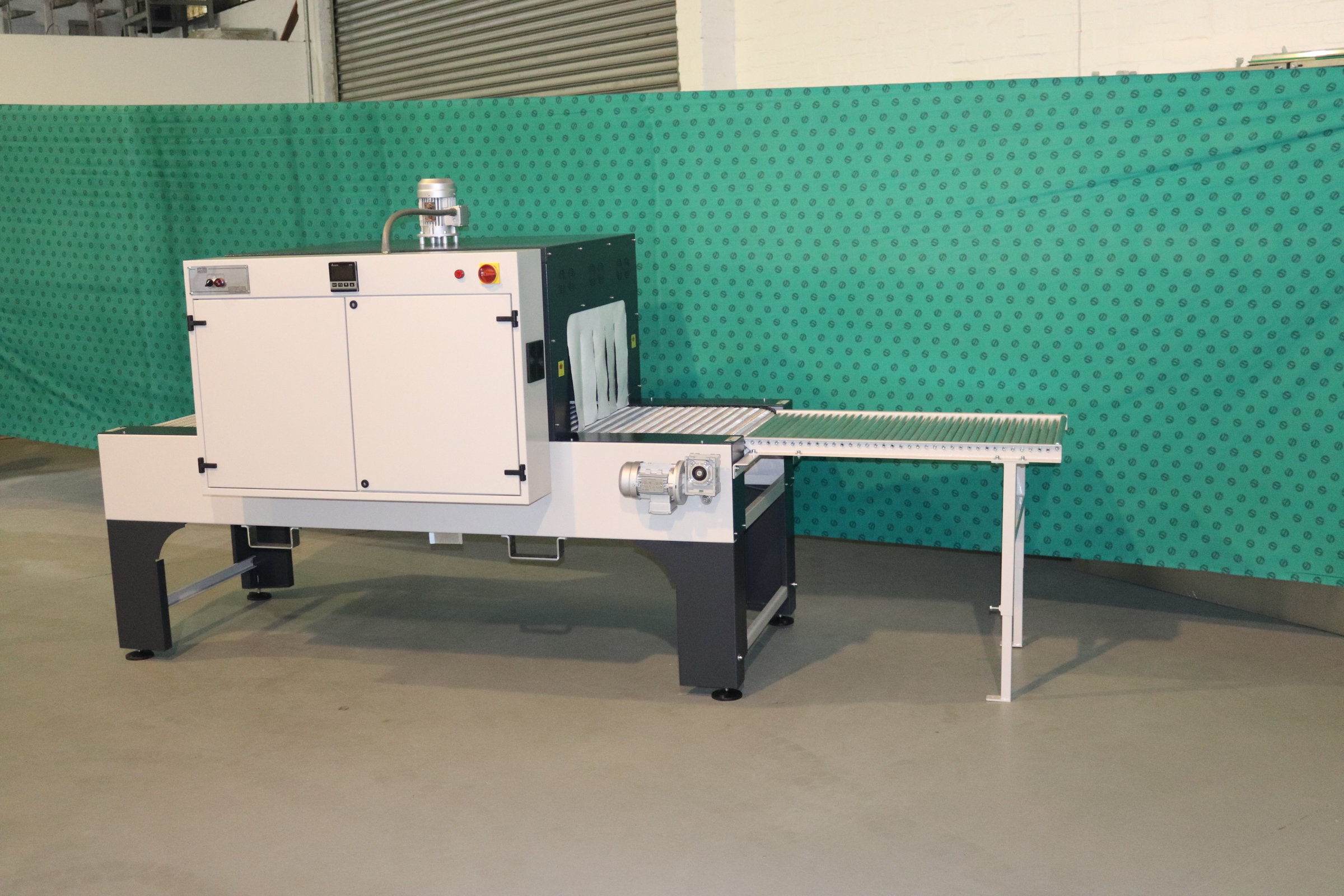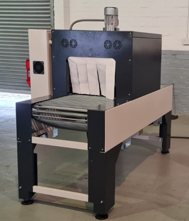 • External cooling fans at the end of the tunnel to complete shrinking process and cool product