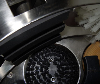 – central vertical brush, rotating at high speed, for washing the entire surface of the bottle