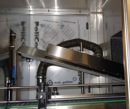 Once the bottle has been washed, two stainless steel blowing blades, powered by a high-pressure fan, dry the entire surface, allowing it to be labelled.