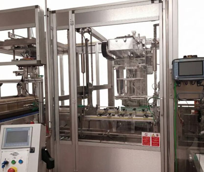 A special version is available for the automatic cartoning of “lying down” bottles with the automatic insertion of the interlayer between the lying bottles.