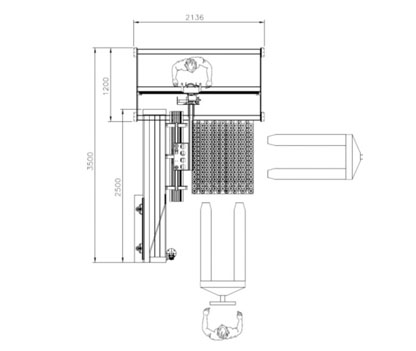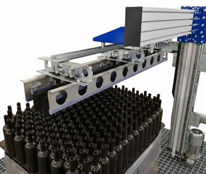 Alternatively, a version with a gripping head for picking up a full tier of bottles, in which case productivity increases considerably.